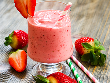 1. Schiacciare le fragole, tritare il ghiaccio e aggiungere lo sciroppo di agave. Versare tutto in una tazza.