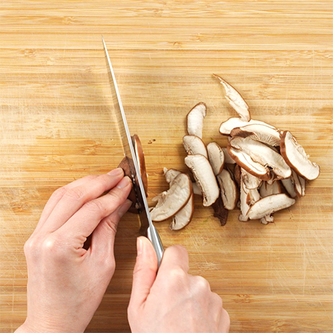 しいたけは硬いところを取り除き、食べやすい大きさに薄く切る。しょうがはみじん切りにする。