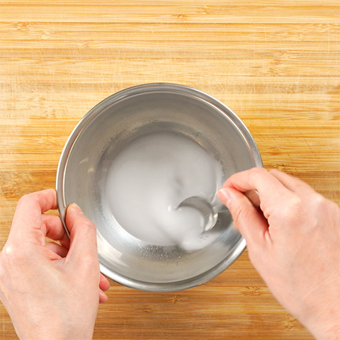 片栗粉に少量の水(分量外)を加え、水溶き片栗粉を作る。