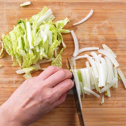 白菜は細切りにする。