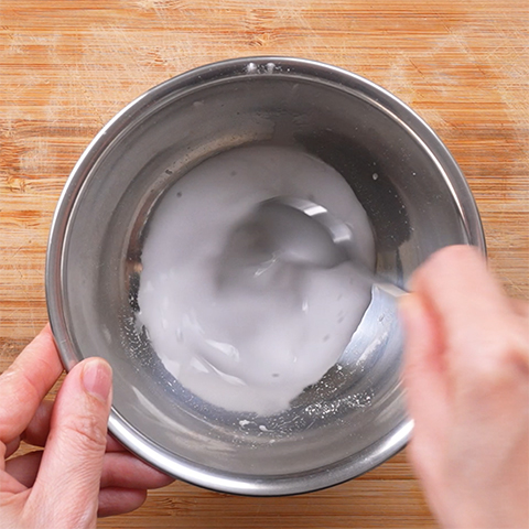 片栗粉に倍量の水(分量外)を加えて水溶き片栗粉を作る。
