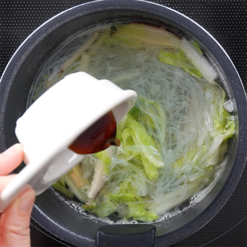 白菜がやわらかくなったらStep1の春雨、☆を加える。